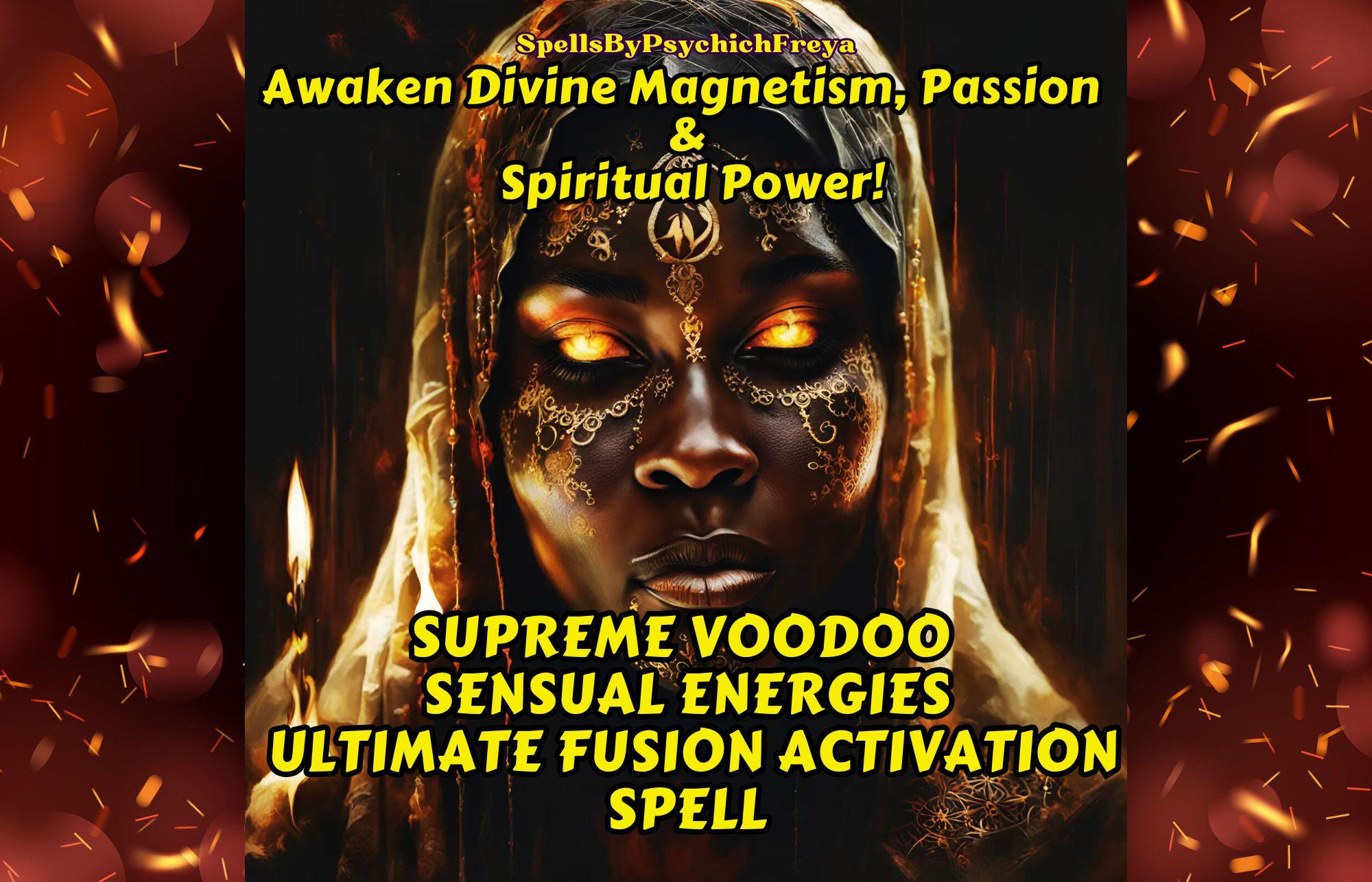 re you ready to awaken a potent, irresistible energy that will make you an unstoppable force of attraction, desire, and empowerment? The Supreme Voodoo Sensual Energies Ultimate Fusion Activation is designed to infuse your being with ancient, mystical energies that amplify your magnetic allure, deepened sensuality, and spiritual strength, allowing you to captivate and manifest with divine power.